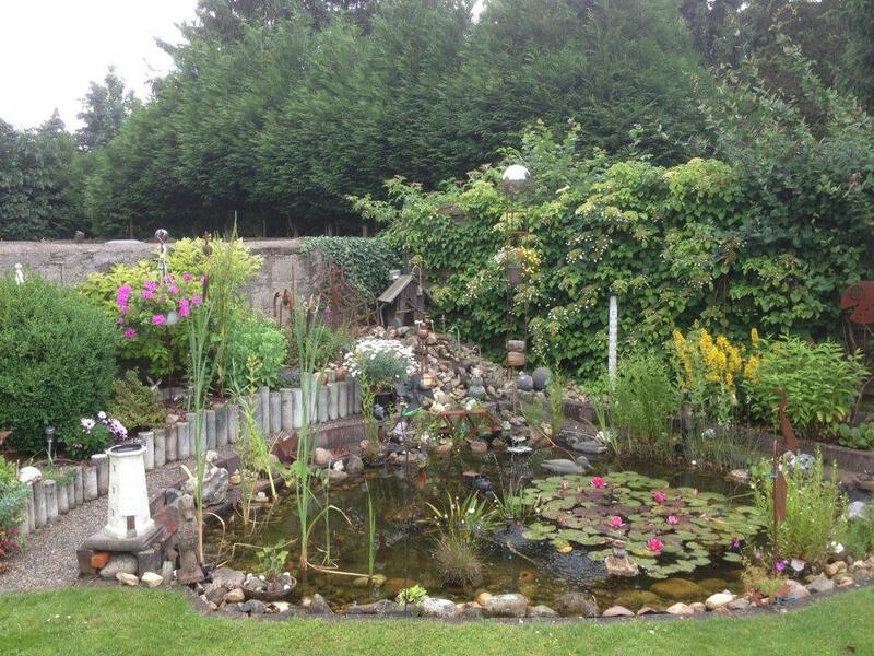 Der seit 1995 angelegte Garten ist ca. 800 m² groß und enthält eine alte Mauer, einen Teich mit Bachlauf, einen Pavillon und eine gemütliche Sitzecke. Eine ca. 900 m² große Wiese ist zudem als Skulpturengarten angelegt. Besucher sollen bitte beim nahe gelegenen Einkaufszentrum parken. Der Garten kann auch nach telefonischer Anmeldung besucht werden unter Telefon 0176-83502469. Der naturnahe Garten am Fachwerkhaus bietet auf 1.500 m² eine bunte Vielfalt an Sommerblühern, Hortensien, Funkien, Stauden und vieles mehr.
