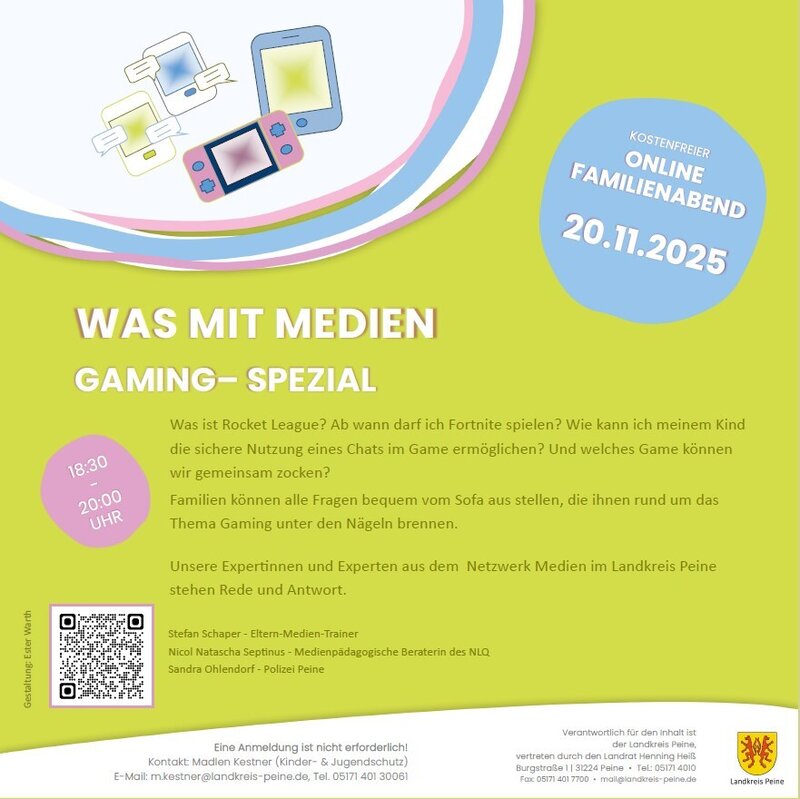 Diese und weitere Fragen beantworten Elternmedien Trainer Stefan Schaper, die Medienpädagogische Beraterin des NLQ Nicol Natascha Septinus, Sandra Ohlendorf von der Polizei Peine und Madlen Kestner vom Jugendamt des Landkreises Peine.